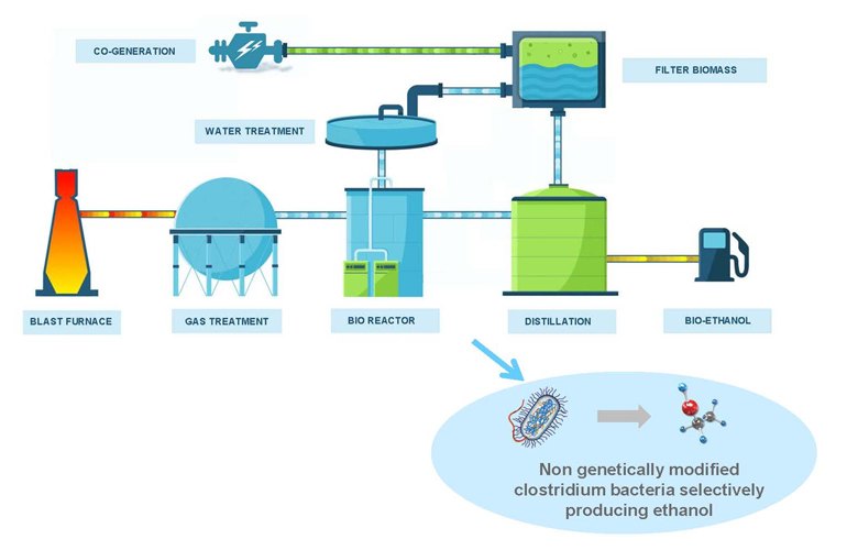 The technology in the gas conversion process was pioneered by US-headed biotechnology and carbon recycling process developer LanzaTech, Inc., with whom ArcelorMittal has entered a long-term partnership. The technology licensed by LanzaTech uses naturally occurring microbes that feed on carbon monoxide (CO) to produce ethanol.