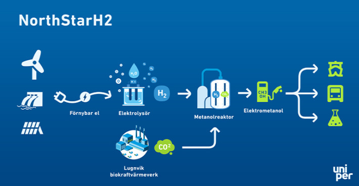 In Sweden, municipal energy company Jämtkraft AB and Uniper Sweden, part of Germany-headed international energy major Uniper SE have signed an agreement to develop NorthStarH2, a carbon capture and utilization (CCU) electro-fuel (eFuel) project in the municipality of Östersund.