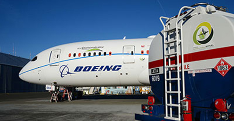 Boeing worked with airlines, engine manufacturers, and others to conduct biofuel test flights starting in 2008 and gain approval for sustainable fuels in 2011.