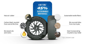 Michelin owes this progress to the greater use of natural rubber, together with the inclusion in its tyres of recycled carbon black, oils such as sunflower oil and bio-sourced resins, silica from rice husks, and recycled steel.