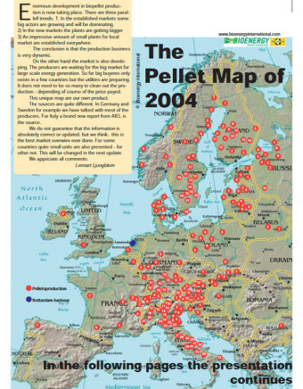 Including smaller plants that were not listed but were operational at the time, there were perhaps 250-300 operational pellet plants in 2004 located in 28 countries with a combined installed capacity of approximately 6.3 million tpa with a few plants over 100 000 tpa.