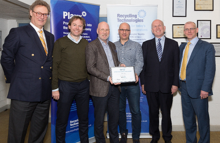 In a world where only 10 percent of valuable plastic waste materials are recycled each year, Recycling Technologies’ RT7000 machine recycles all types of plastics, including those considered unrecyclable such as films, coloured and laminated plastics including crisp packets and food pouches.