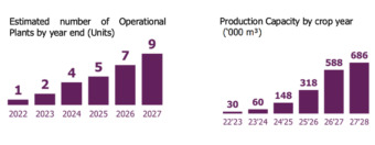 Raízen reaffirms its plan to have 20 E2G plants by crop year 2030’31, with an installed production capacity of approximately 1.6 million m³ per annum.